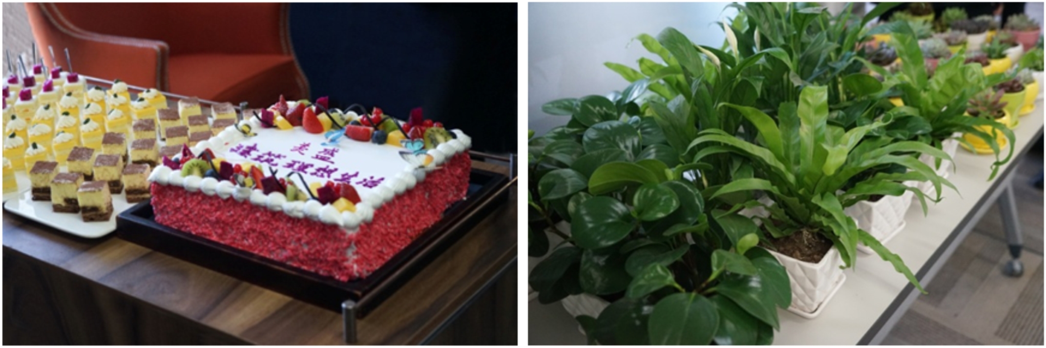 喬遷儀式的現(xiàn)場(chǎng),行政管理中心的同事還精心準(zhǔn)備了節(jié)目和可口的蛋糕甜品,并為每位同事贈(zèng)送了一盆桌擺綠植。祝愿兩個(gè)部門在新的辦公環(huán)境中順心順意,共創(chuàng)佳績(jī)。