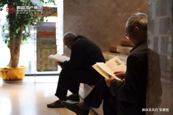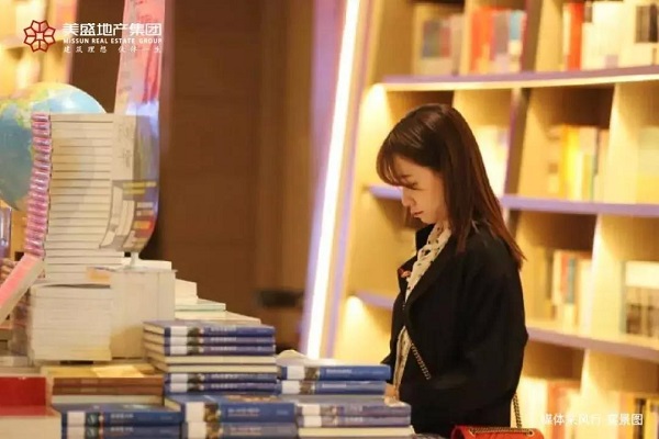 在美盛·教育港灣項目新華書店,置身琳瑯滿目的書籍之中,每一步皆蘊含著濃郁的書香氣息。傳統書店與千畝大盤的創造性結合,迸射出了文化光芒,打破了以往大家對于地產項目銷售部的印象,進而對這樣一個“教育大城”更加充滿信心與期待。