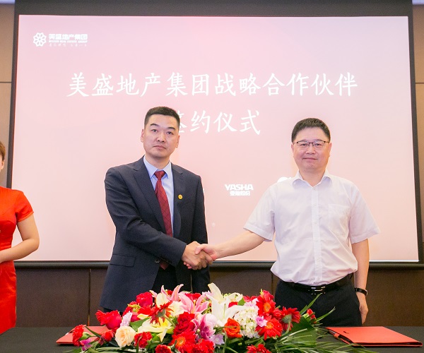 美盛地產(chǎn)集團(tuán)副總裁蘇揚(yáng)先生與浙江亞廈裝飾股份有限公司亞廈裝飾總經(jīng)理張小明簽署戰(zhàn)略合作協(xié)議
