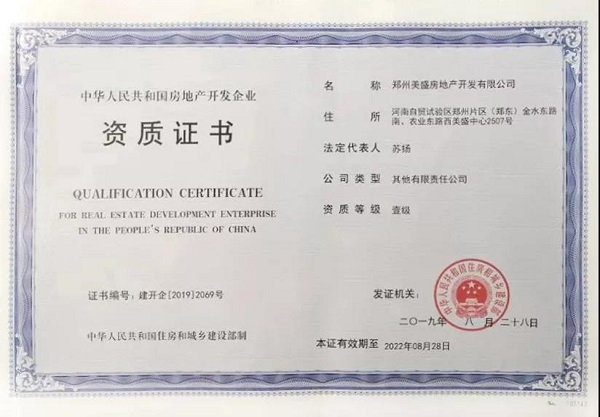 此次,美盛地產(chǎn)集團(tuán)在眾多參與評選的實力企業(yè)中脫穎而出,榮獲房地產(chǎn)開發(fā)企業(yè)國家一級資質(zhì)。這不僅是對美盛在房產(chǎn)開發(fā)中專業(yè)能力的認(rèn)可、對美盛地產(chǎn)集團(tuán)建筑工程質(zhì)量、施工保障體系等工程品質(zhì)的肯定,更是對美盛力量的至高褒獎。