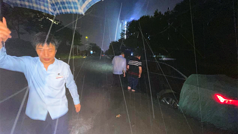 7月20日當晚,面對暴雨汛情突發(fā),美盛物業(yè)迅速集結各項目工作人員成立應急小組,全員24小時堅守在一線救災抗災。當日22點,物業(yè)服務中心接到業(yè)戶求助電話,車輛涉水拋錨美盛中心外1公里處,情況緊急。美盛物業(yè)項目負責人迅速集結秩序經理、消防主管、中心工程經理等趕往現場,以最短時間到達業(yè)主身邊,幫業(yè)戶推車至安全地區(qū)。