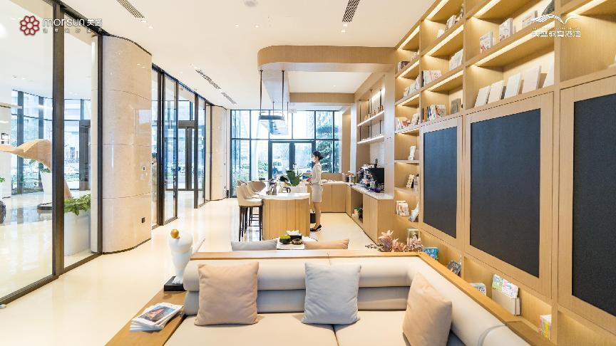 回歸到交付產品本身,從優雅大氣的建筑外立面,到精心營造的中央水系景觀再到精裝交付的美+咖啡館、四點半課堂等公區,從多個角度來看,這都是一次超預期的品質兌現。