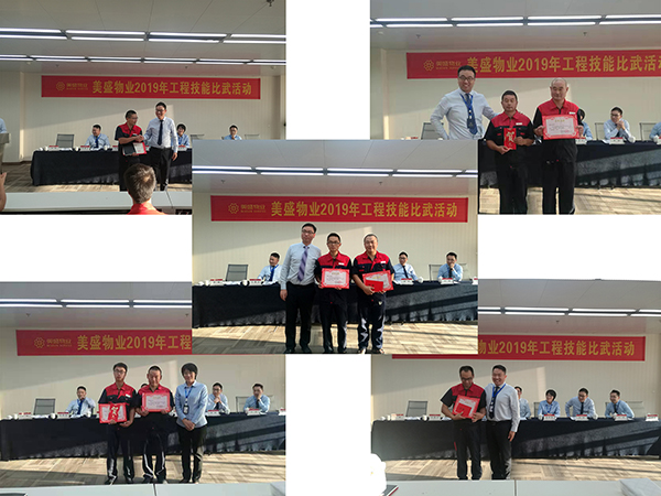 經過緊鑼密鼓的比賽,各參賽項目按預定要求完成工程比武科目。此次技能比武最后進行分數統計及排名,評定出獲得獎項的是:第一名美盛中心代表隊;第二名美盛物業鄭州分公司案場代表隊;第三名徐莊社區代表隊、特別參與獎南陽分公司代表隊;最佳才藝獎許昌分公司邢根源。