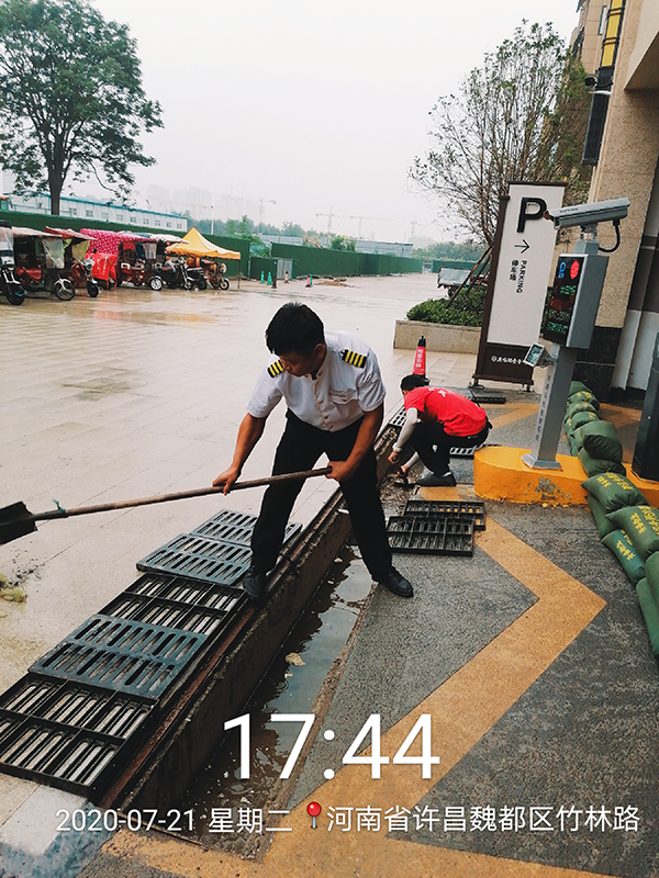 美盛物業各項目防汛組成員24小時通訊暢通,隨時待命,做好搶險、搶修準備;上下聯動、科學調動,動員各方力量參與防汛,確保各物業服務現場安全度汛,最大化的維護業主的生命財產安全。